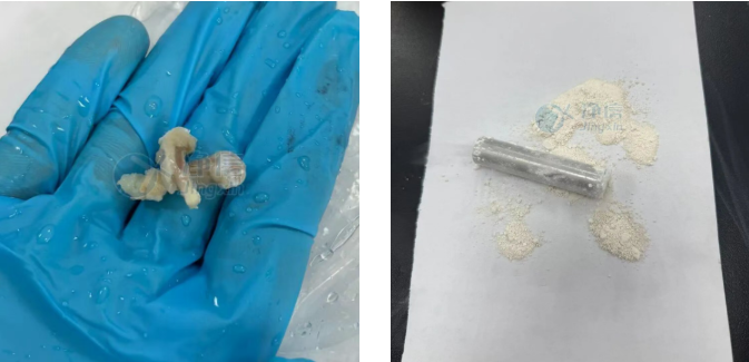 經(jīng)全自動(dòng)液氮冷凍研磨儀處理后的大鼠股骨,成功變?yōu)榧?xì)膩粉末,無肉眼可見顆粒。后續(xù)檢測(cè)完全符合實(shí)驗(yàn)要求。