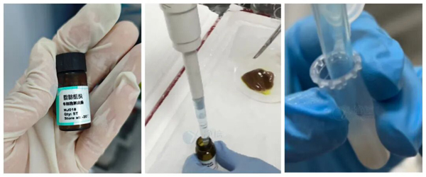提取腹部皮下脂肪,仔細(xì)剔除筋膜、血管等雜質(zhì),再把組織切成1-2毫米的細(xì)小碎塊,最后稱(chēng)取103 mg樣本備用。取樣后要立刻放入含PBS的培養(yǎng)皿中,一旦細(xì)胞失水,活性就會(huì)大打折扣。